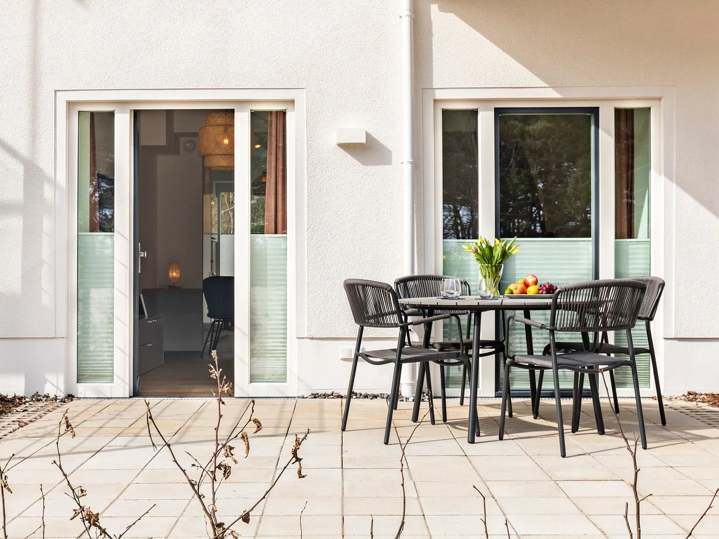 - Terrasse: Sitzmöglichkeit mit Blick auf die Dünenlandschaft