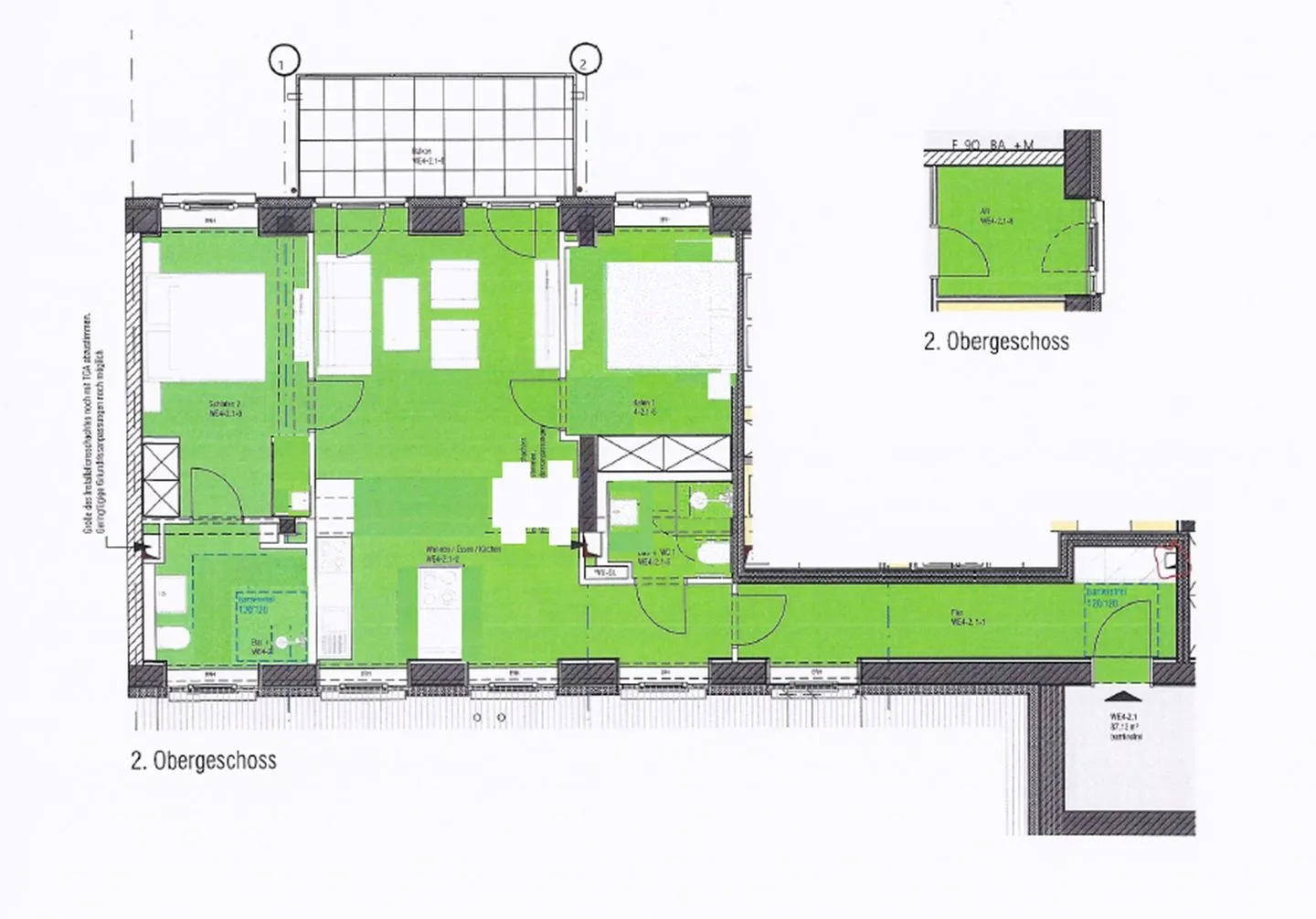 - Schlafzimmer 2: Doppelbett (180x200), Kleiderschrank, TV