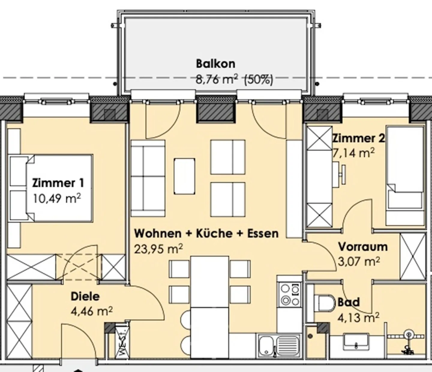 - Gemeinschafssauna: Sky-Sauna 5.OG mit dazu gehöriger Rooftop-Terrasse