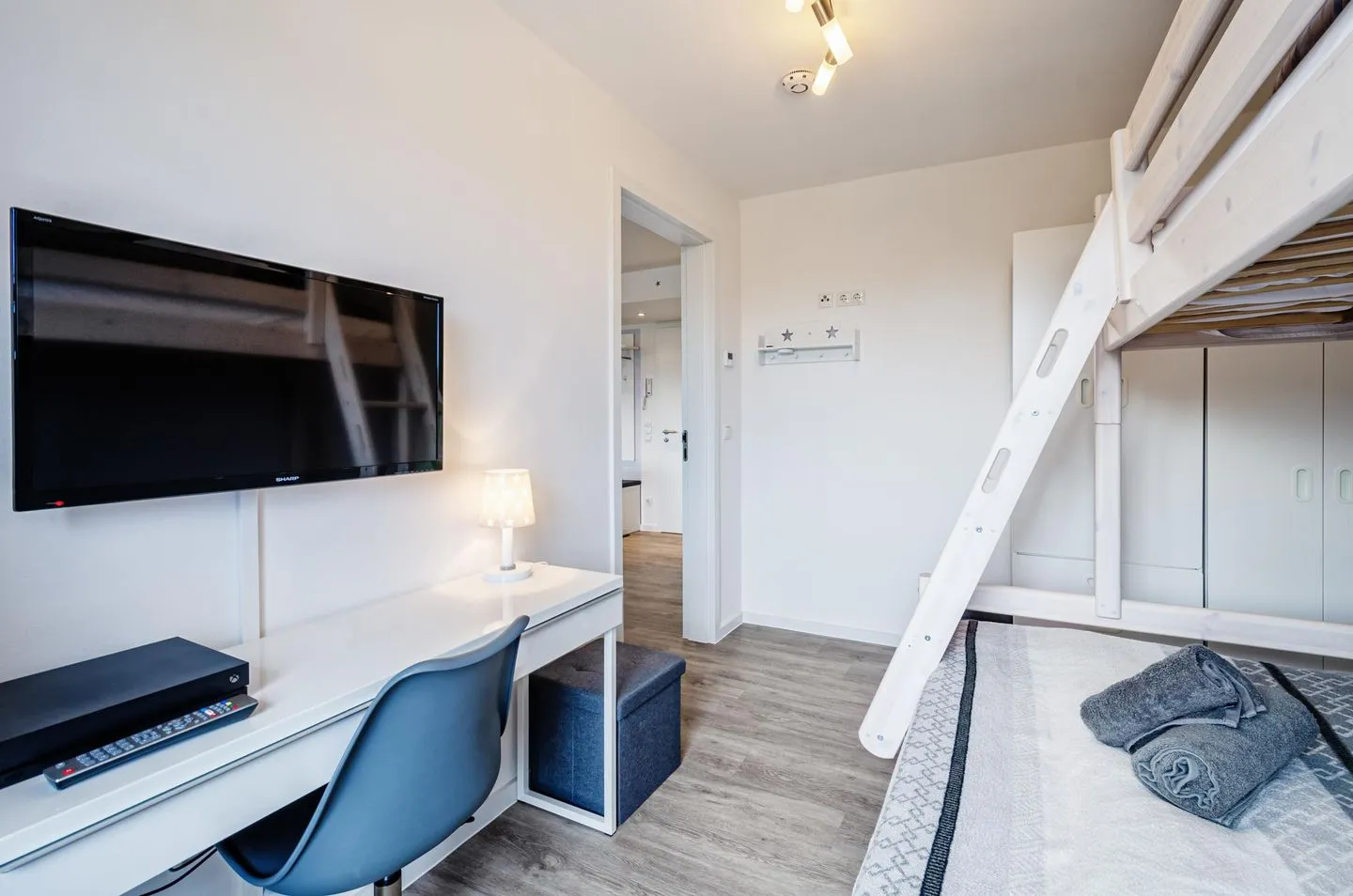 - Schlafzimmer 2: Etagenbett (oben: 90x200 - unten:140x200), Xbox-OneX-Konsole