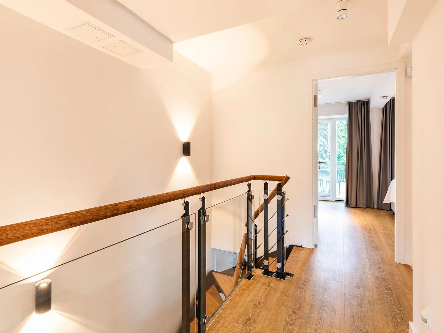 - Schlafzimmer 1 (Seeseite): 1 Doppelbett (180x200), TV-Flachbild, Zugang zum Balkon