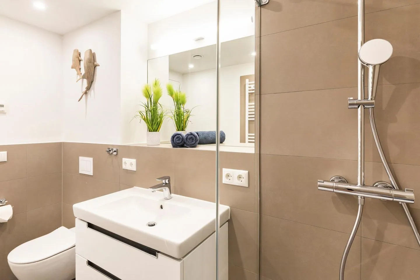 zu vier Personen. Zwei vollausgestattete Bäder mit Regenduschen verhindern Wartezeiten,