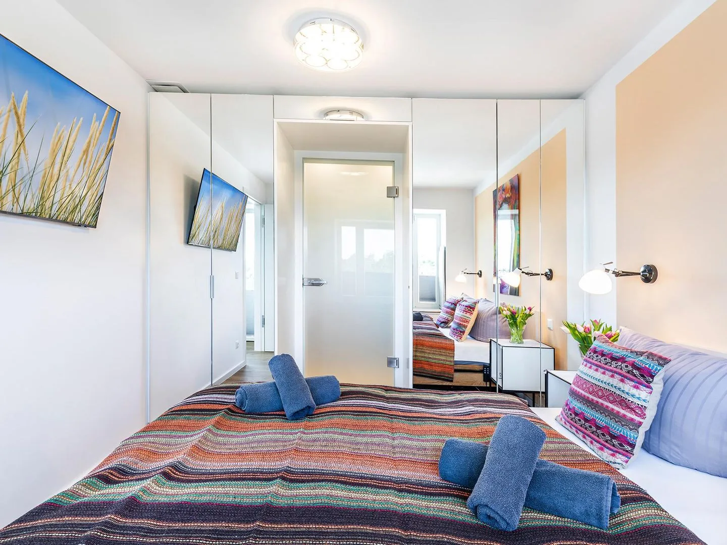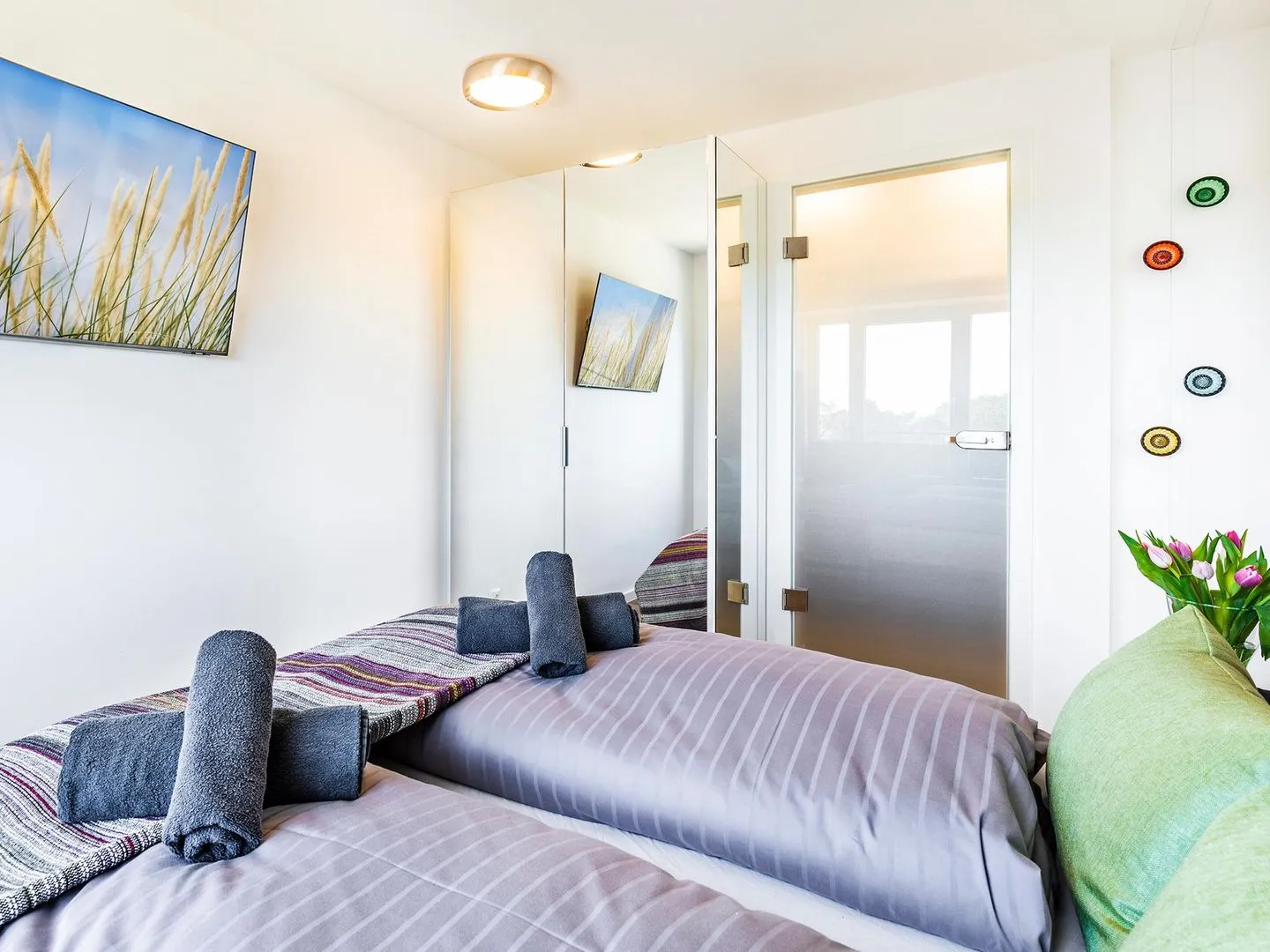 - Zwei Schlafzimmer mit Doppelbetten 160x200 (Einzelmatratzen 80x100), elektrischen Lattenrosten, Smart-TV, Insektenschutz