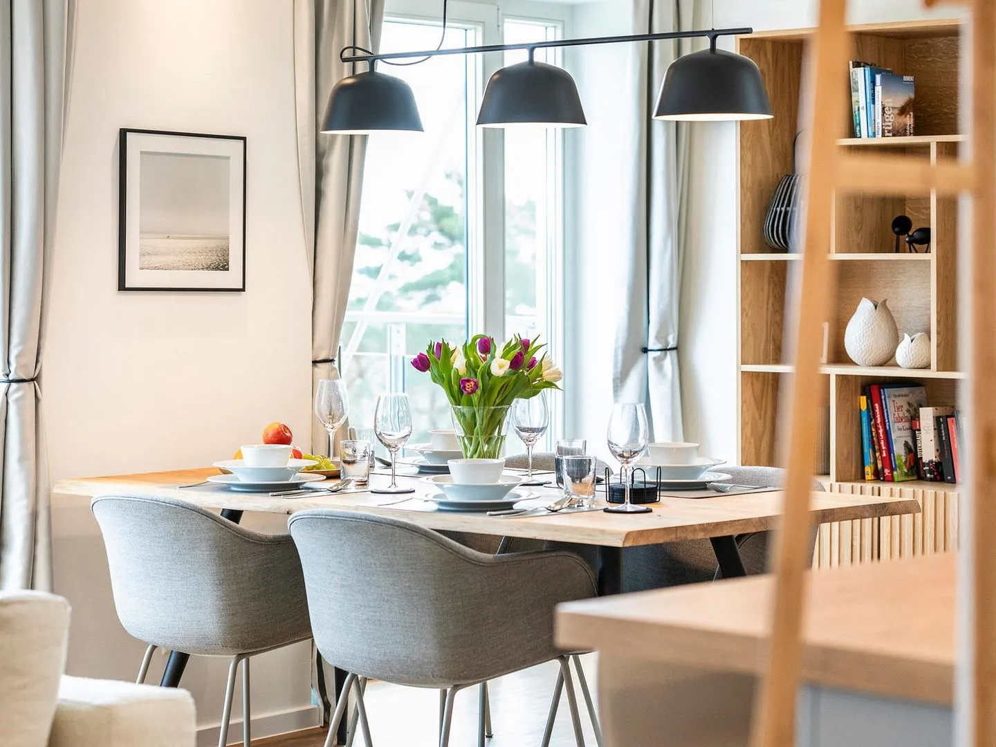 Direkt hinter den Dünen der Binzer Bucht erwartet Sie eine modern eingerichtete Ferienwohnung mit Blick auf die Ostsee, die Ihnen bei jeder Wetterlage eine entspannte Auszeit vom Alltag ermöglicht.