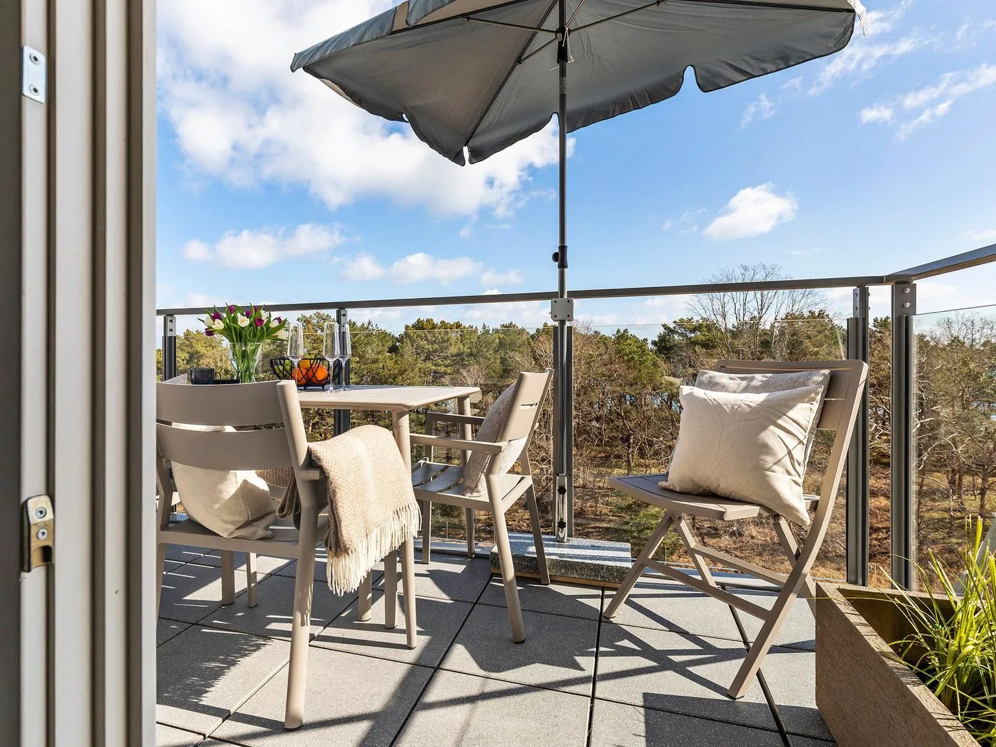 Genießen Sie Ihr Frühstück an sonnigen Tagen auf dem Balkon und lassen Sie nach langen Strandausflügen den Abend auf Ihrer eigenen Dachterrasse mit Blick auf Binz und Sassnitz ausklingen.
