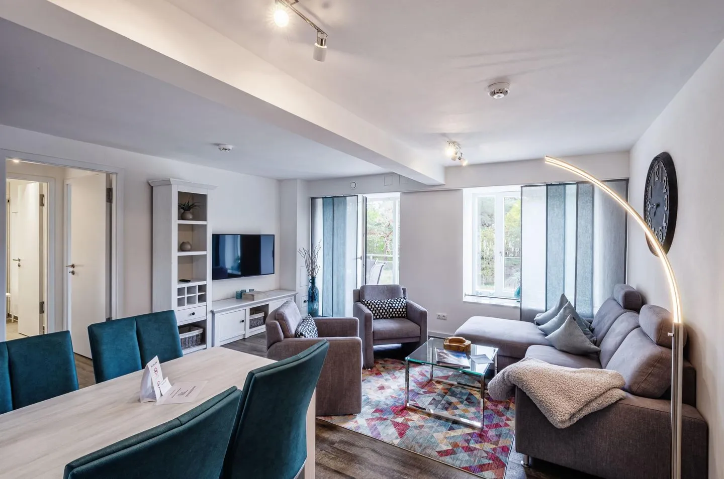 Die Wohnung Düne18 ist sehr gemütlich und geschmackvoll eingerichtet und hat uns als Paar mit einem Teenager ausreichend Platz geboten. Das Mobiliar ist in sehr gutem Zustand und die gesamte Wohnung war sehr gepflegt und sauber. Die offene Küche ist gut mit Geschirr und Besteck ausgestattet, ... sodass man nicht jeden Tag den Geschirrspüler benutzen muss. Einzig eine Salatschüssel und Topfhandschuhe haben wir vermisst. Das könnte sicher einfach ergänzt werden. Die Betten waren sehr bequem und wir haben mit Meeresrauschen wieder hervorragend geschlafen. Leider ist der Durchgang zwischen Wand und Bett im großen Schlafzimmer etwas schmal geraten. Der TV an der Wand ist etwas hinderlich. Im kleineren der beiden Duschbäder ist das Waschbecken etwas sehr klein. Das hat sich als unpraktisch erwiesen. Das Licht im Flur funktioniert mit Bewegungsmelder, was sehr praktisch ist. Nur im kleinen Flur zwischen den Schlafzimmern empfanden wir das automatische Licht als störend, besonders nachts beim Gang ins Bad. Die geräumige Gemeinschaftssauna mit Ruheraum und Dachterrasse hat uns sehr gefallen. Hier kann man einfach für sich einen Zeitslot reservieren und hat somit auch Privatsphäre. Wir haben uns in der Wohnung sehr wohl gefühlt und würden sie auch erneut buchen. weiterlesen