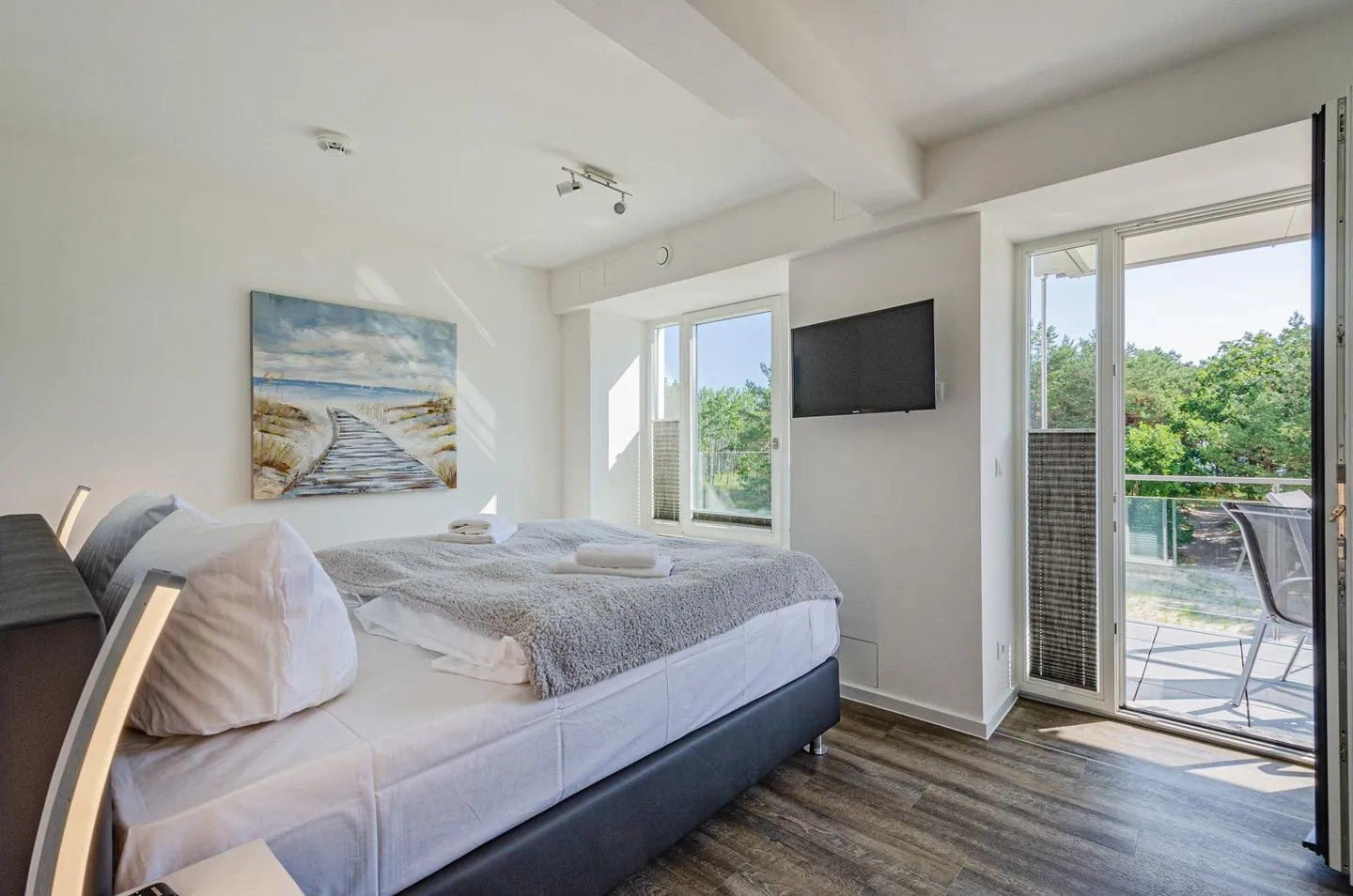 Nur ein paar Schritte trennen Sie von der besagten Düne und dann sind es nur noch wenige Meter bis zum Meer. "Düne18" so nennt sich die im 2.OG befindliche, liebevoll eingerichtete Ferienwohnung, in der bis zu 4 Personen Platz finden. Eine offene Küche empfängt Sie im Eingangsbereich übergehend zum Wohnraum mit Blick zum Meer. Große Fenster lassen viel Licht in den Raum. Vom Doppelbett im Schlafzimmer aus, kitzelt Sie morgens die Sonne wach, das Rauschen des Meeres macht Lust aufzustehen. Im zweiten Schlafraum ist noch einmal Platz für zwei weitere Personen. Zwei moderne Duschbäder mit WC lassen viel Raum für eine Familie, Freunde oder zwei Paare.