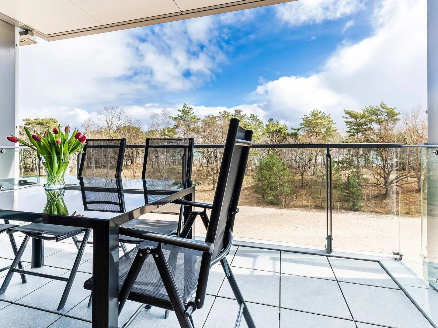 - Balkon mit Tisch und 4 Stühlen, Blick auf das Meer