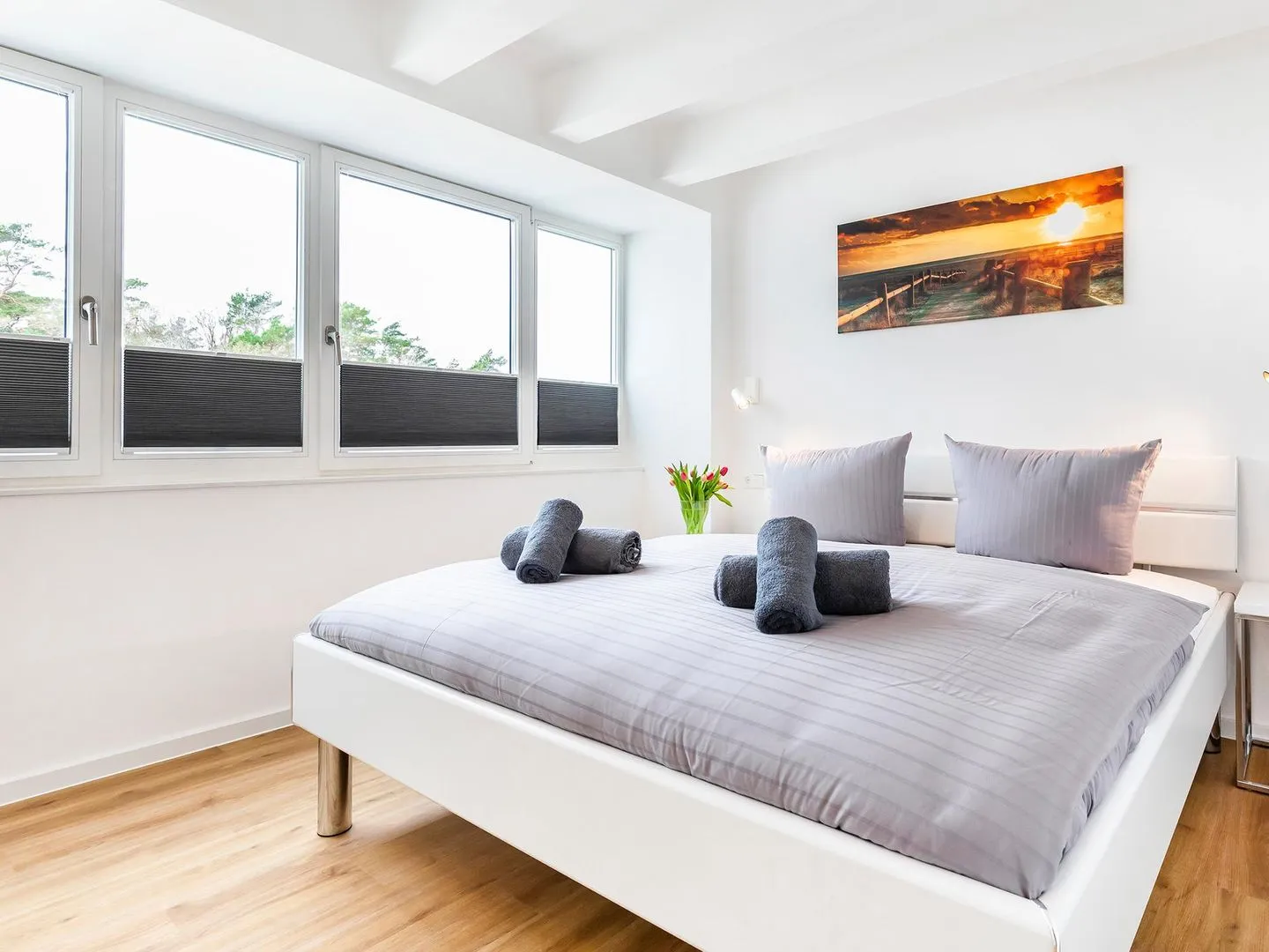 - Schlafzimmer 1: Doppelbett (180x200), TV, Zugang zum Balkon, - Blick auf das Meer
