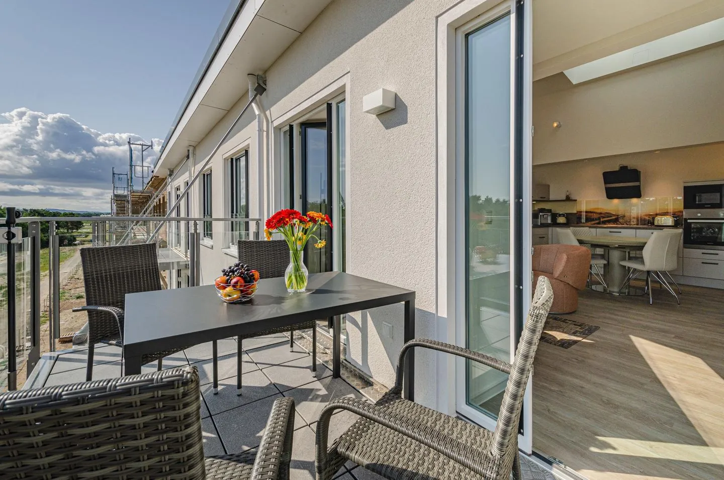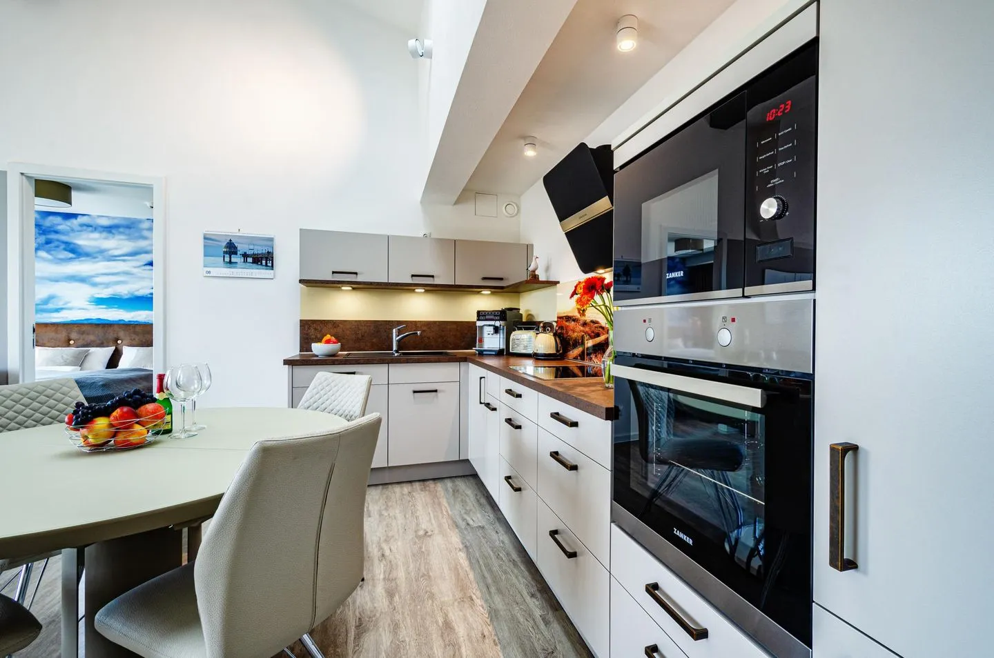 Es erwartet Sie eine schöne, helle moderne Ferienwohnung im 5. OG mit Loft - Feeling, Dachfenster und Balkon zur Seeseite, einer Gemeinschaftssauna sowie Gemeinschaftsdachterrasse mit einem wunderschönen Ausblick.