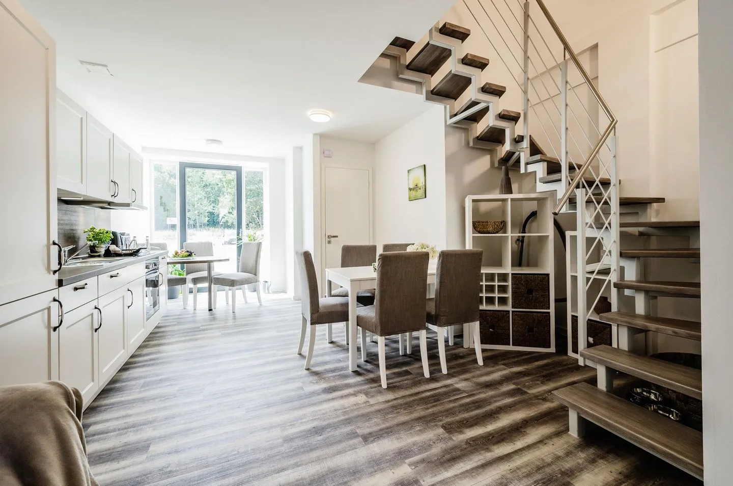 Sie werden in dem 2018 neu sanierten Haus Granitz residieren, nur eine Gehminute bis zum Strand, dann liegt Ihnen das blaue Meer zu Füßen. Das 102 m² große Maisonette Apartment für 2-6 Personen soll Ihnen durch den großzügig geschnittenen Wohnraum ein offenes Raumgefühl vermitteln. Ein gern gesehener Gast kann auch ein kleiner Hund sein. Der Hundestrand liegt ca. 5 min vom Haus entfernt. Das Appartement verfügt im Erdgeschoss über eine ca. 20 m² große Terrasse, hat eine offene Wohnküche und ein Gäste-WC. Durch eine Wendeltreppe kommen Sie in das 1. OG. Hier befinden sich zwei Schlafräume und ein Bad mit Dusche und WC. Ein Flatscreen-TV sowie WLAN sind natürlich vorhanden. Zu den weiteren Annehmlichkeiten zählen ein Abstellraum mit Waschmaschine im Haus, eine Fahrradunterstellmöglichkeit, ein hauseigener Strandzugang und ein freistehender Parkplatz vor der Haustür. Im Infopoint der Tourismusagentur Prora.com gibt es viele Informationen, wie Sie Ihren Urlaub noch bereichern können. Wir bitten um Verständnis, dass dieses Apartment eine Nichtraucherwohnung ist.