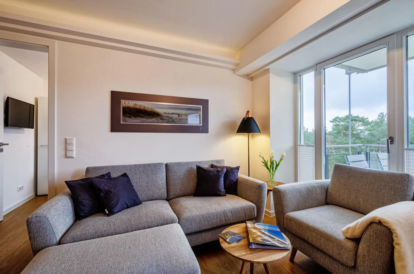Das Apartment KaSaMimb heißt Sie willkommen mit einem offenen Wohn-, Koch- und Essbereich in zeitloser Farbgestaltung, akzentuiert durch ein vielfältiges Lichtkonzept mit dimmbaren Lichtvouten und unterschiedlichen Beleuchtungsquellen. Tagsüber genießen Sie - auch aus beiden Schlafzimmern - über das Dünenwäldchen hinweg und hindurch den Ostseeblick und streifen dabei den Ostseestrand, den Sie in 3 Minuten Fußweg durch den nur Hausgästen vorbehaltenen Zugang erreichen.