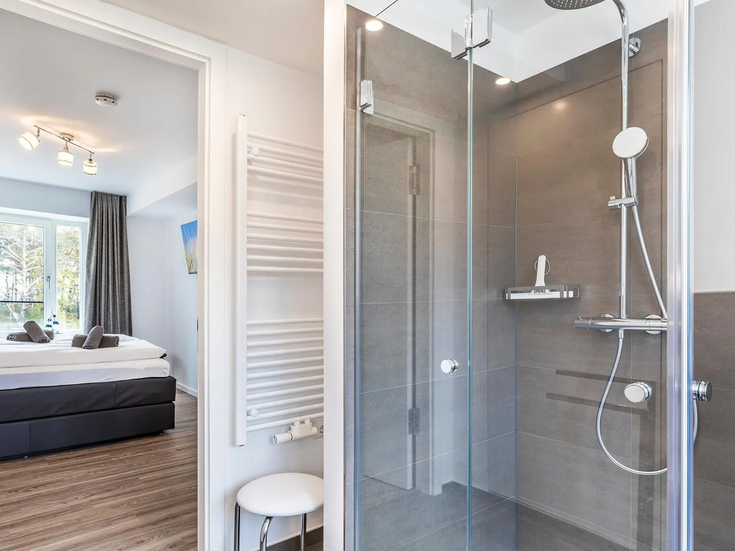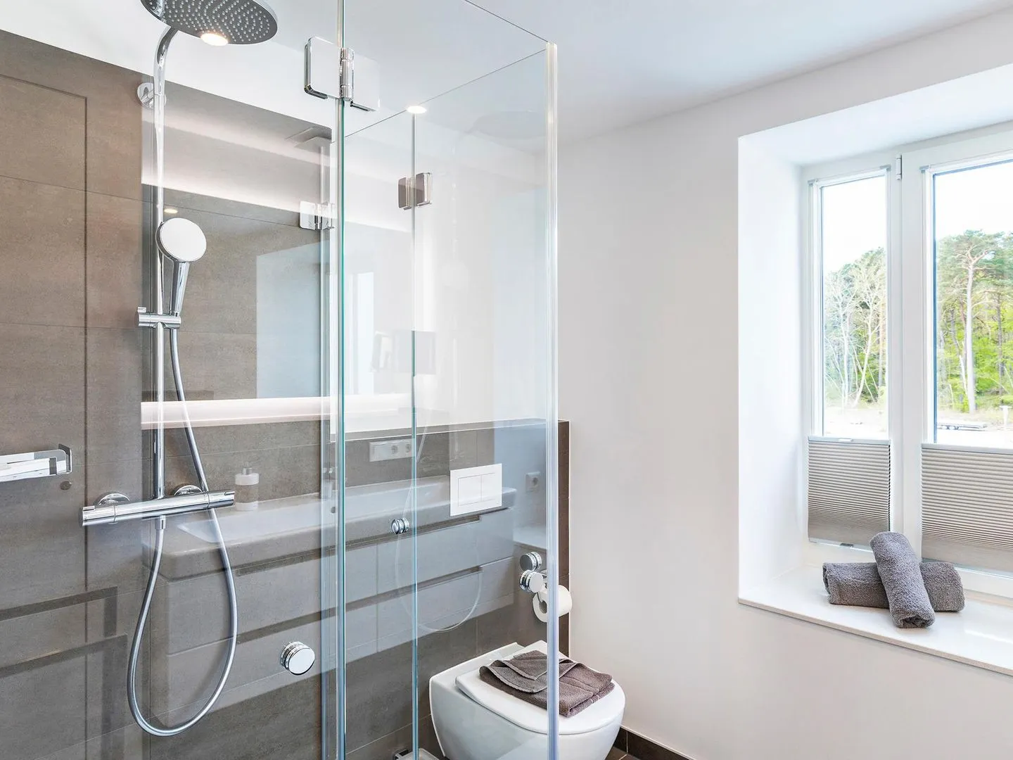 - Badezimmer 1: Regendusche, WC, Haartrockner