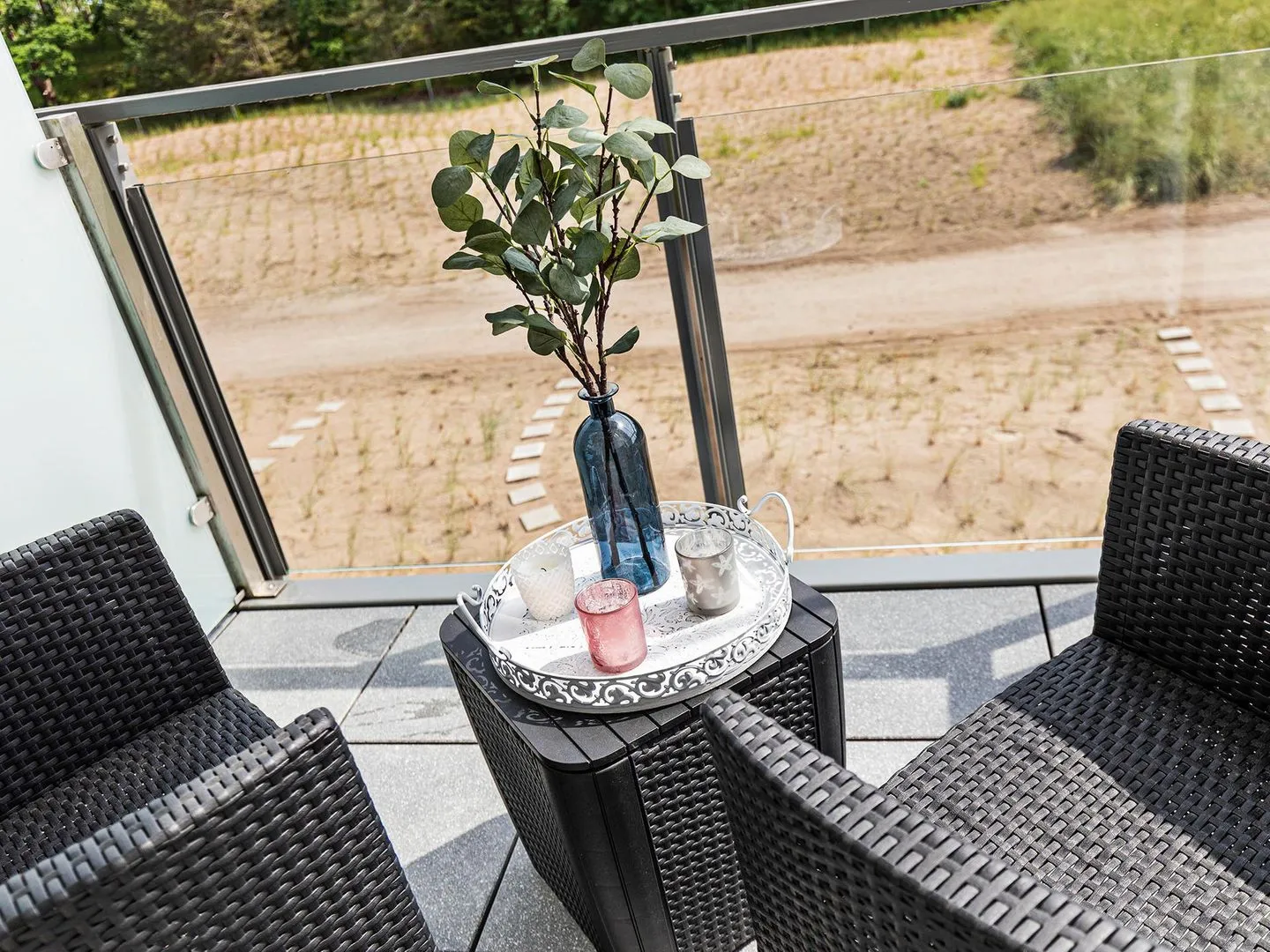 Bei sommerlichen Temperaturen genießen Sie gemütliche Stunden auf der Terrasse, ausgestattet mit einem E-Grill, Strandkorb, Sitzgruppe und Sonnenschirm, oder Sie nehmen nach einem schönen Tag am Meer einen Sundowner auf dem Balkon mit Blick auf die Ostsee. Egal bei welchem Wetter, diese Ferienwohnung bietet Ihnen jederzeit einen Lieblingsplatz und einen entspannten Rügen-Urlaub. Diese Wohnung ist eine Nichtraucher-Wohnung, Haustiere müssen draußen bleiben. Ein Pkw-Stellplatz befindet sich in unmittelbarer Nähe.