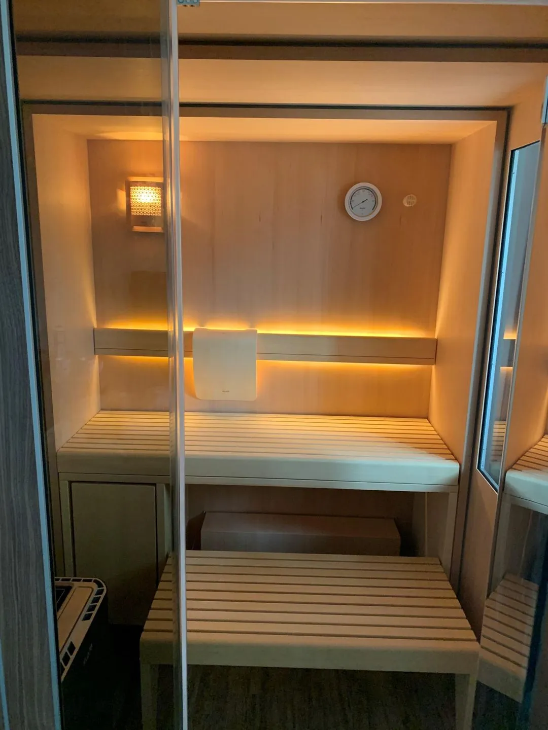 Seit Januar sorgt eine Sauna (ausfahrbare Schranksauna - Klafs S1) für zusätzliche Entspannungsmomente. Hier können Sie von der Sauna aus durch den Kiefernwald auf die Ostsee schauen und anschließend auf dem Balkon abkühlen oder relaxen und dabei den Sternenhimmel genießen. Ein unvergessliches Urlaubserlebnis!