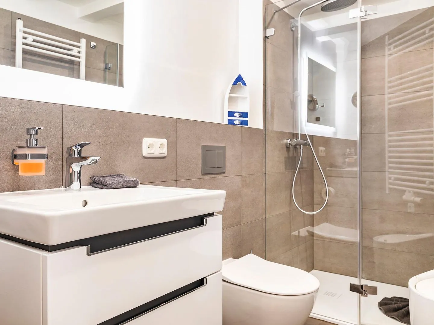 - Badezimmer 1: Regendusche, WC, Haartrockner