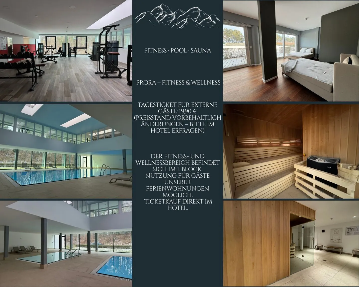Fitness & Wellness im 1. Block – direkter Vorteil für unsere Gäste Als Gast unserer Ferienwohnung im 1. Block haben Sie die Möglichkeit, Pool-, Sauna- und Fitnessangebote in unmittelbarer Nähe zu nutzen sowie Tennisplätze für Tennis und Tischtennis zu nutzen. Der Zugang ist gegen Gebühr (Preisstand vorbehaltlich Änderungen – bitte im Hotel erfragen) möglich. Tickets und aktuelle Preise direkt im Hotel vor Ort.