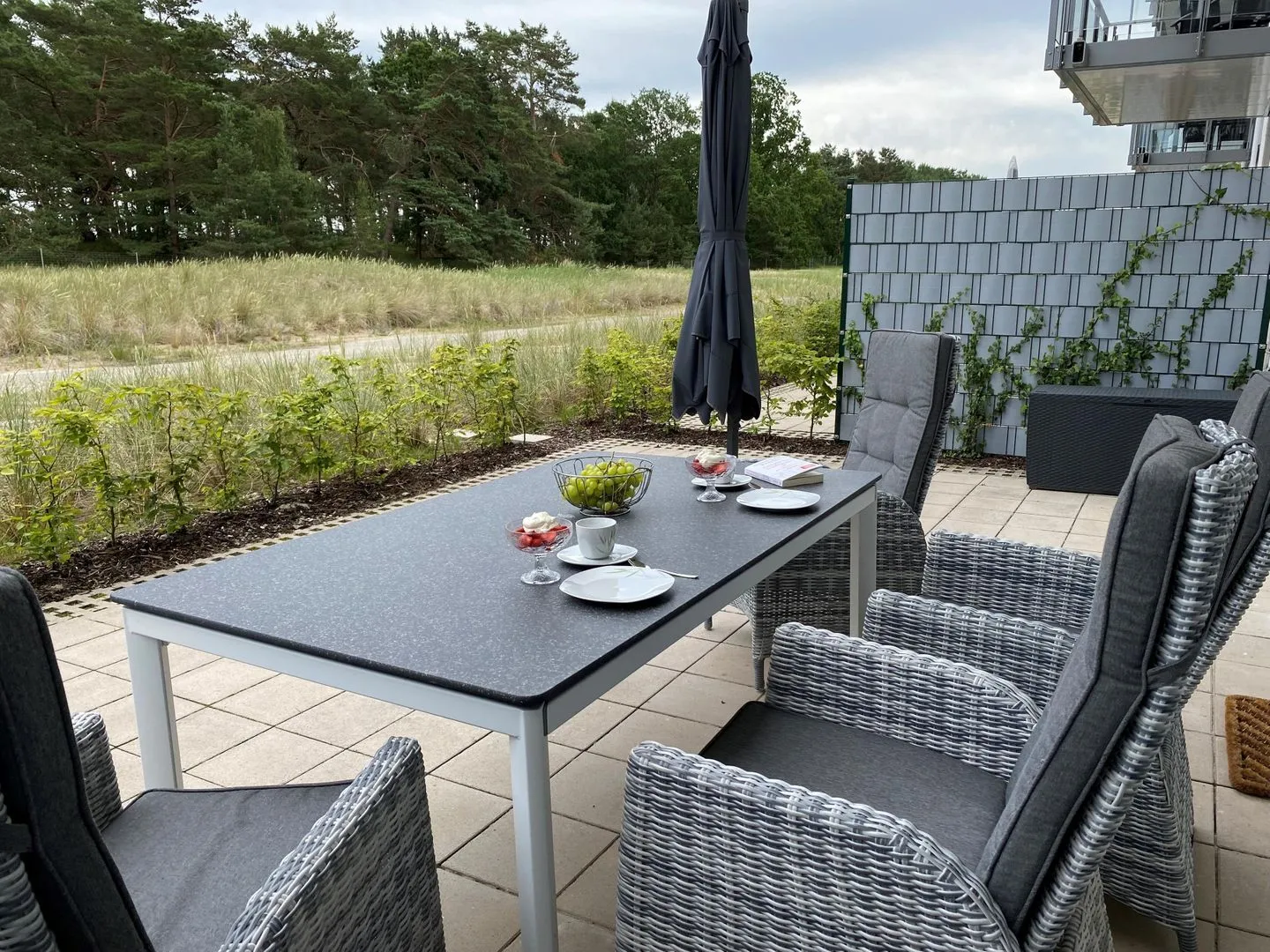 - Terrasse: Sitzmöglichkeit mit Blick Richtung Meer