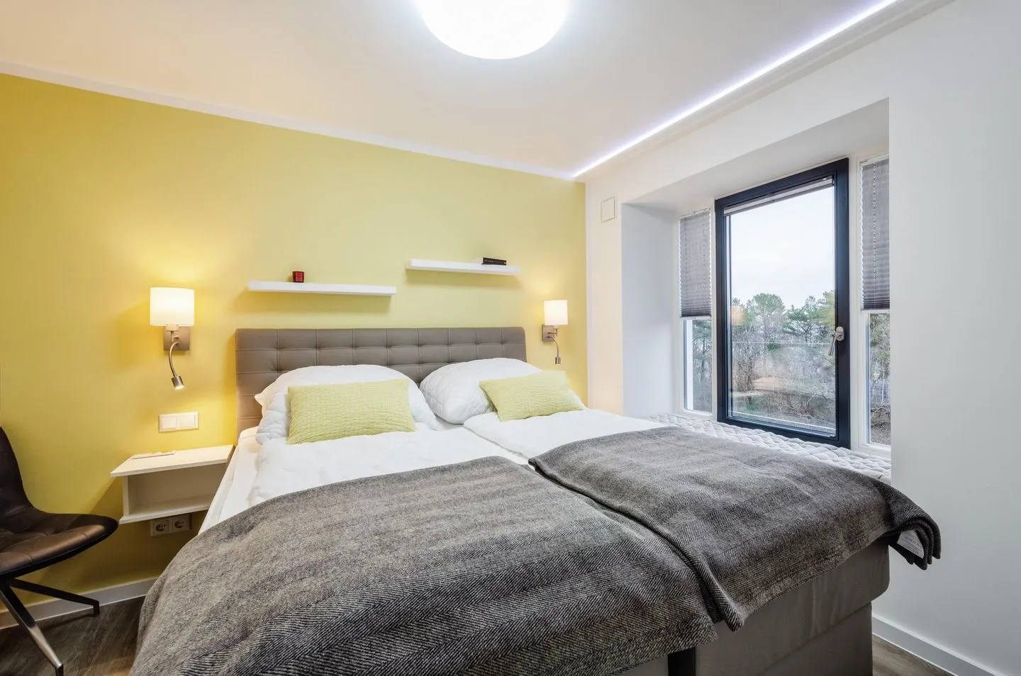 Dieses Appartement im 4. Obergeschoss des Hauses Granitz bietet auf ca. 62 m² Platz für bis zu 4 Personen. Hier wird das Farbenspiel des Sandes wieder aufgegriffen, sanfte Töne spiegeln sich in dem Appartement wieder. Die Fensterbänke in den zwei Schlafräumen sind so angebracht und mit gemütlichen Sitzkissen dekoriert, dass Sie ganz gemütlich sitzend, mit einem Glas Wein in der Hand dem Wellenspiel zuschauen können. Eine gemütliche Wohnküche lädt zum Kochen ein. Auf dem Balkon können Sie ebenfalls mit Blick zum Meer, Ihr Abendbrot genießen. Ein freier Parkplatz ist garantiert. Bitte haben Sie Verständnis, dass dies eine Nichtraucherwohnung ist und nicht für Haustiere zu gelassen .