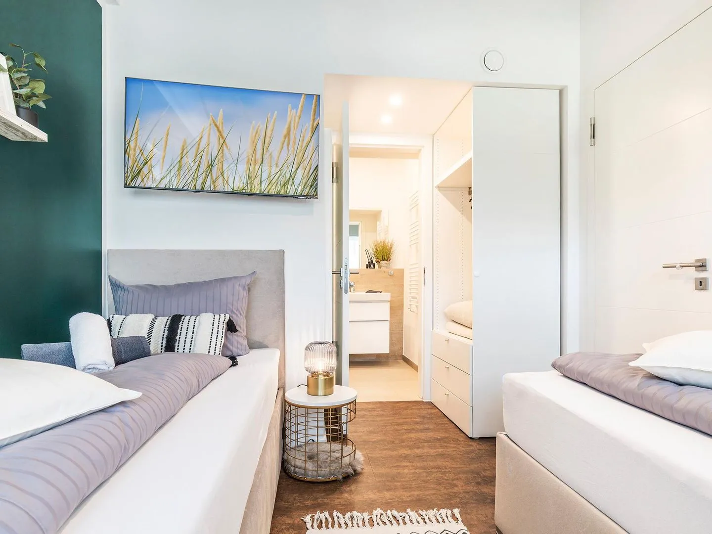 - Schlafzimmer 2 (Landseite): 2 Einzelbetten (90 x 200),TV