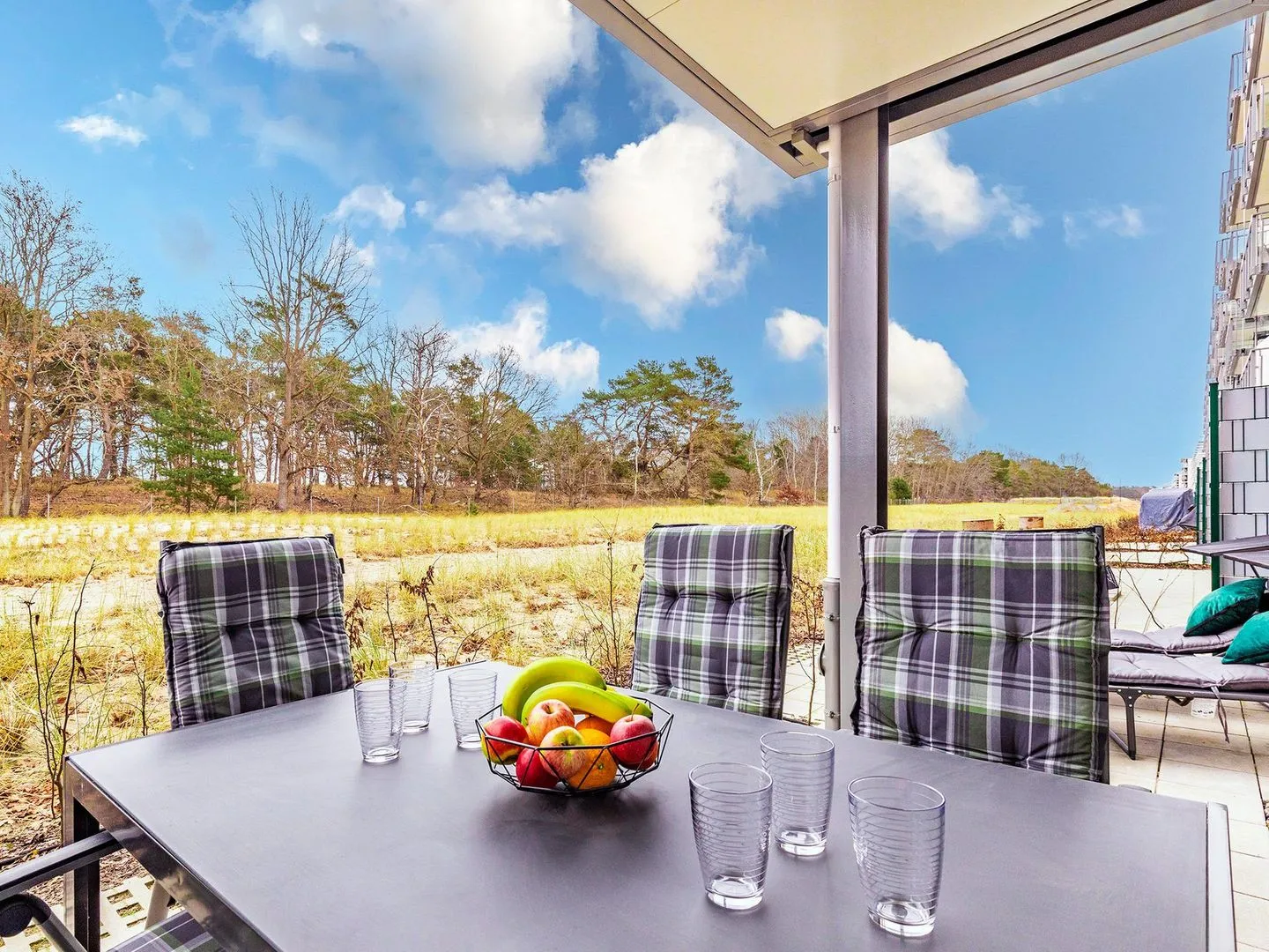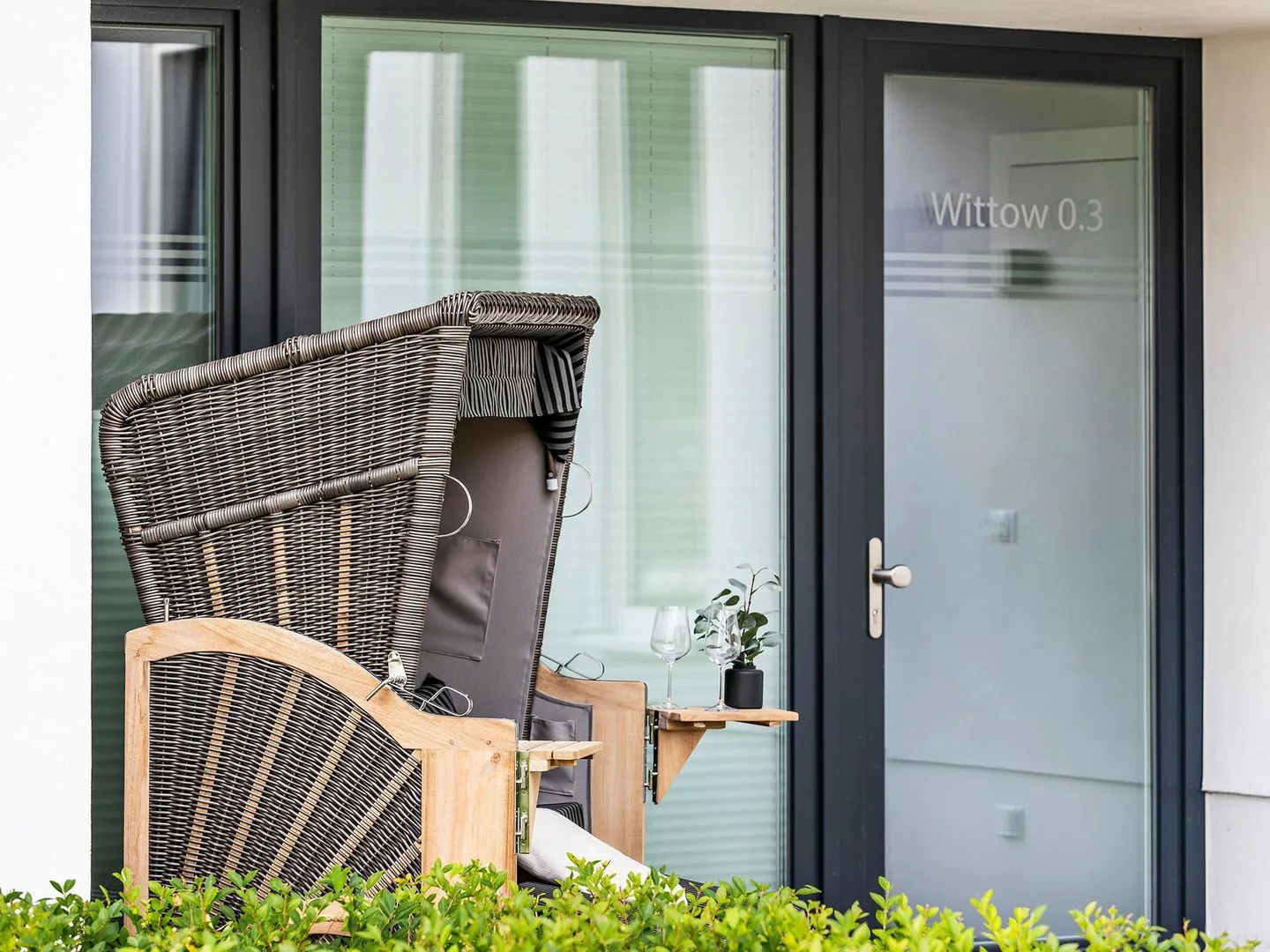 - Terrasse: Südseite mit Strandkorb