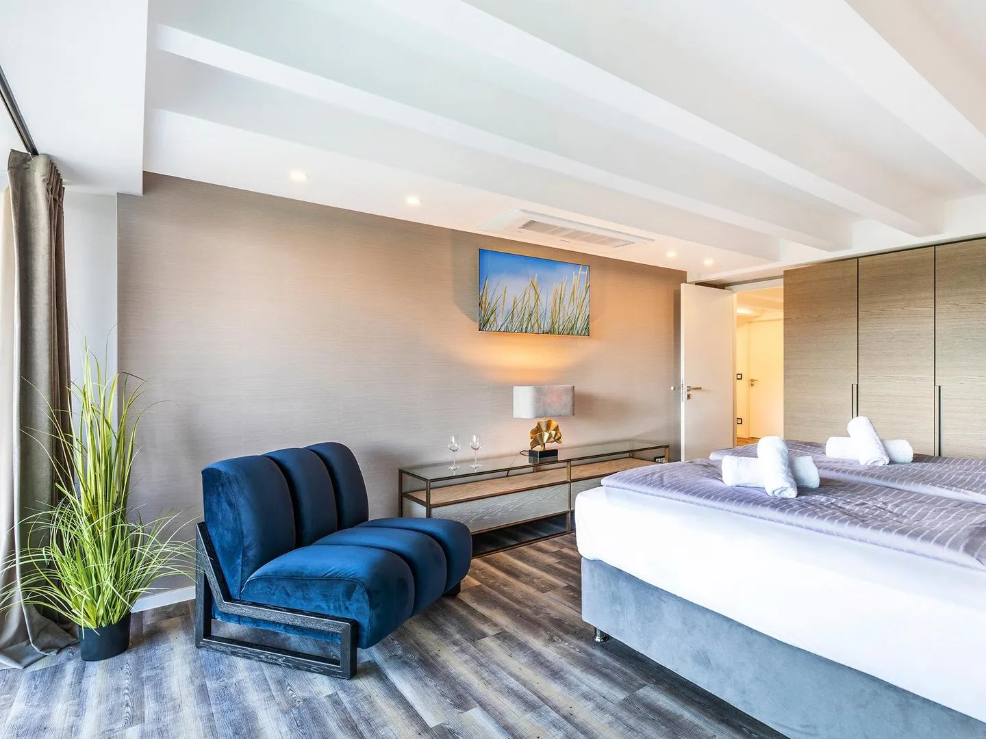 - Schlafzimmer 2: Doppelbett (180x200), Kleiderschrank, Ausblick zur Meerseite, Smart- TV, Zugang zum Balkon, Insektenschutzgitter