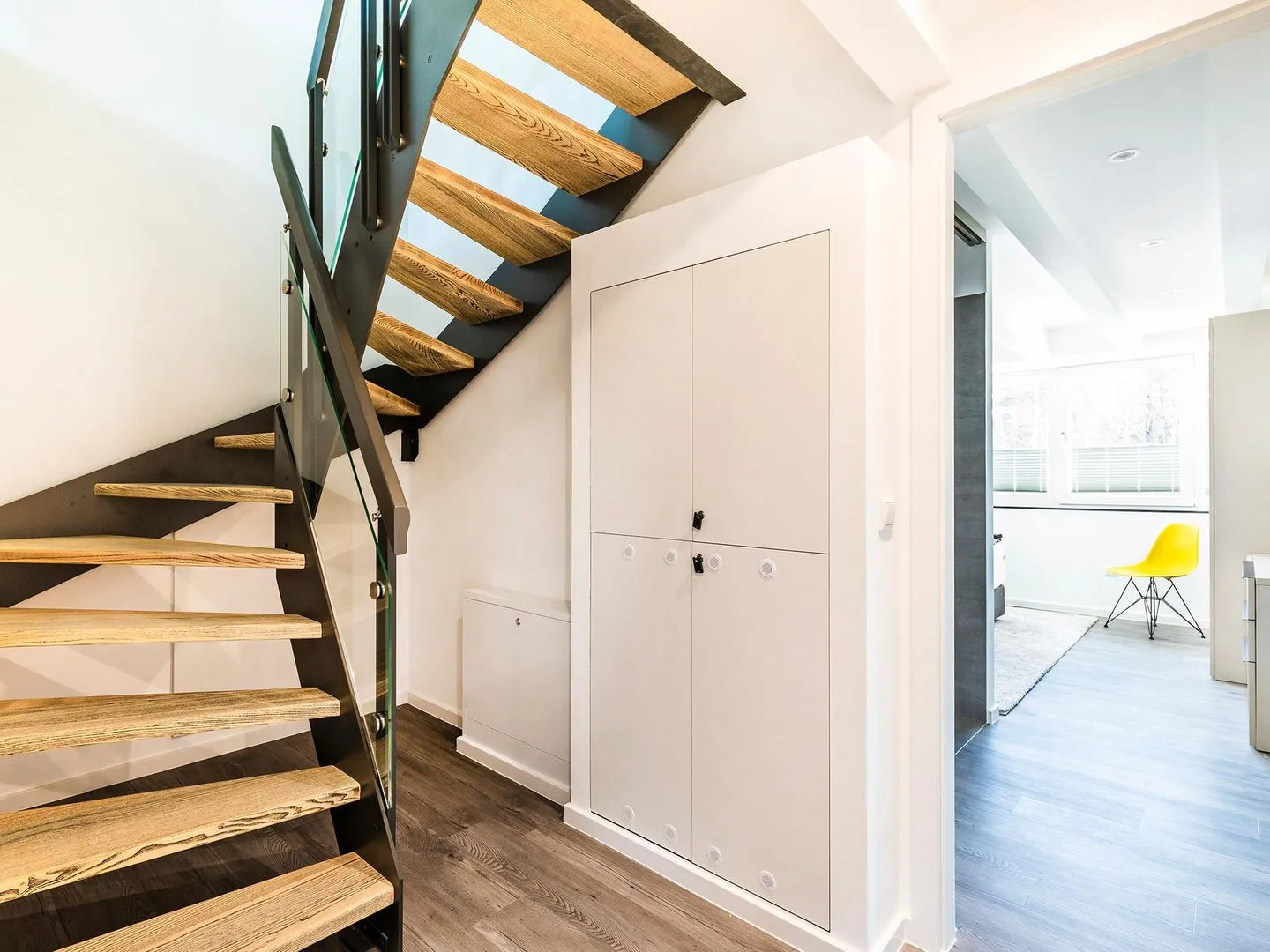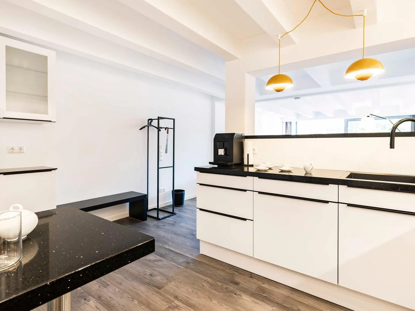 Schon wenn Sie in die 96 m² große Wohnung eintreten, fühlen Sie sich wie im Urlaub. Sie werden gleich von einer modernen, sehr hochwertigen Küche, mit kleinem Tresen und 2 Barstühlen, in Empfang genommen.