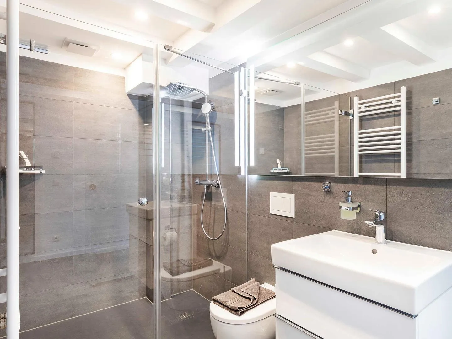 - Badezimmer 2: Regendusche, WC, Handtuchhalter, Haartrockner