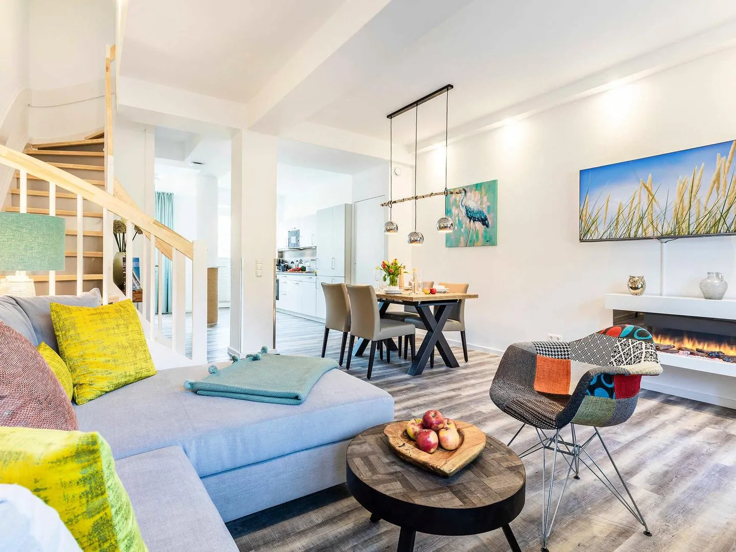 - Terrasse mit Tisch und 4 Stühlen, Blick auf die Dünenlandschaft