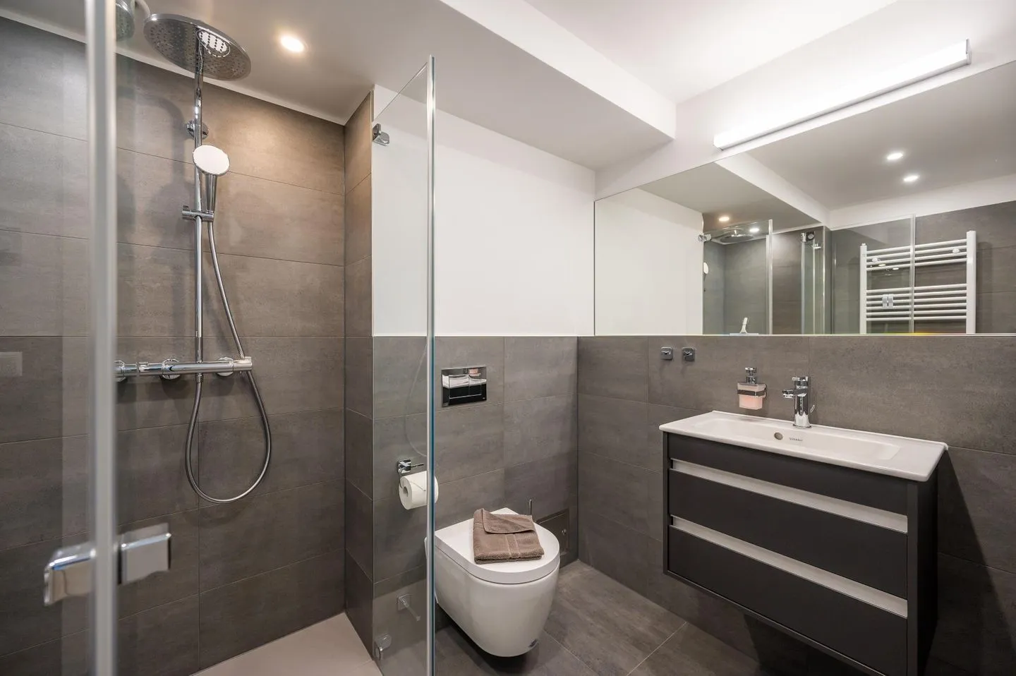 - Badezimmer 1: Regendusche, WC, Haartrockner