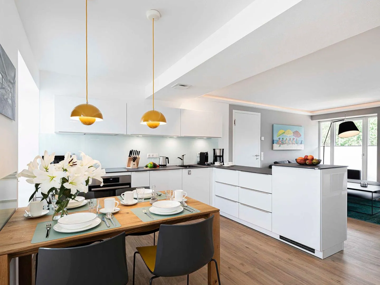 Ein Hauch von Luxus umgibt Sie, wenn Sie diese geräumige Ferienwohnung mit sagenhaftem Meerblick betreten. Die hochwertige Ausstattung wird sofort das Gefühl in Ihnen wecken, zuhause angekommen zu sein. Die 2 Schlafzimmer, das Wohnzimmer mit zentral gelegenem Küchenbereich und die 2 Bäder mit Dusche und WC werden Sie sofort begeistern. Eine weite Fensterfront mit Balkon öffnet sich, so dass die drei hellen Räume von Licht durchflutet werden. Sie werden sich bei uns in Prora sofort heimisch fühlen von einer zauberhaften Natur mit herrlichen Stränden, Bäumen und Dünen umgeben.